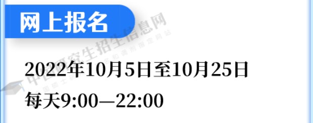 2023考研报名开始后这些信息你需要注意:根据《2023年全国硕士研究生招生工作管理规定》要求,2022年10月5日至25日,考生可登录“全国硕士研究生招生考试网上报名平台”(https://yz.chsi.com.cn)进行网上正式报名,报名时间为每天9:00—22:00。
