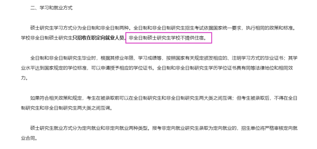 被录取为非全日制的研究生不予安排住宿。