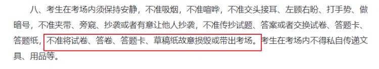 考试结束后,草稿纸需由监考老师统一回收,严禁私自带出考场私自携带草稿纸可能被认定为 “传递考试信息”,成绩直接作废。